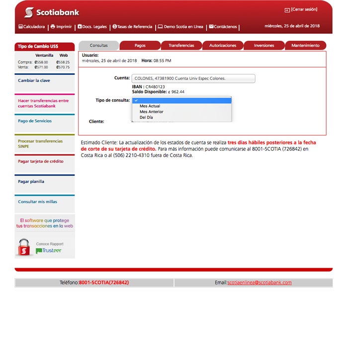 1. Select the “Account Statements” tab under consult your account, select or enter the account number for which you want to generate an account statement. In the space “Type of Inquiry”, select the specific period for the account statement:
