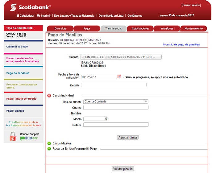 5. Presione “Agregar Línea” y se le desplegará el detalle de la transferencia que desea realizar.