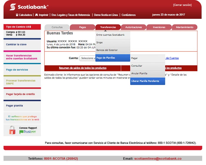 1. Seleccione la opción de “Liberar Planilla Pendiente”, en el módulo de Transferencias, opción "Pago de Planillas".