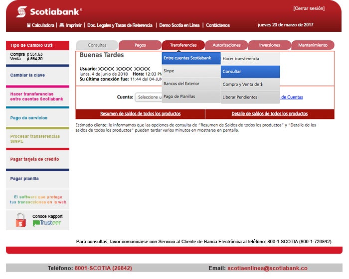 Seleccione la cuenta desde donde desea realizar la consulta de la transferencia realizada, además deberá escoger de la lista el estado de la transferencia (con error, pendiente de firma, procesada o todas) e incluir el rango de fechas en las que desea hacer la búsqueda. Por último presione el botón “Aceptar”.