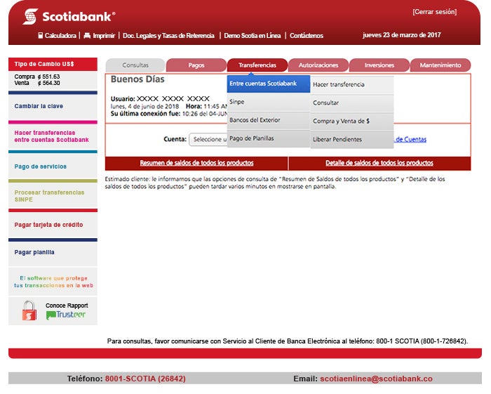 En esta opción podrá realizar una transferencia de fondos entre cuentas propias o bien cuentas de terceras personas con productos de Scotiabank Costa Rica. A continuación se detallan los pasos a seguir: