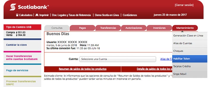 1. Dentro del menú de "Mantenimiento" podrá seleccionar la opción de “Habilitar Token” para activar su dispositivo.