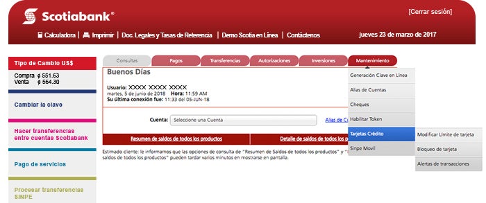 1. Dentro del Menú de “Mantenimiento”/ “Tarjetas de crédito”, podrá encontrar 3 opciones adicionales de acuerdo a la gestión que desee realizar: