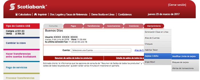 Agregar texto y pantallas: Seleccione el número de cuenta (tarjeta de crédito) e incluya la información que se solicita y presione el botón “Aceptar”.